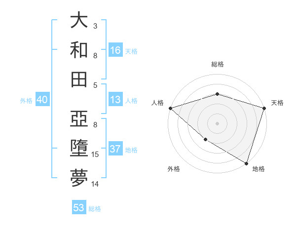 大和田 亞墮夢さんを姓名の画数から五運を鑑定