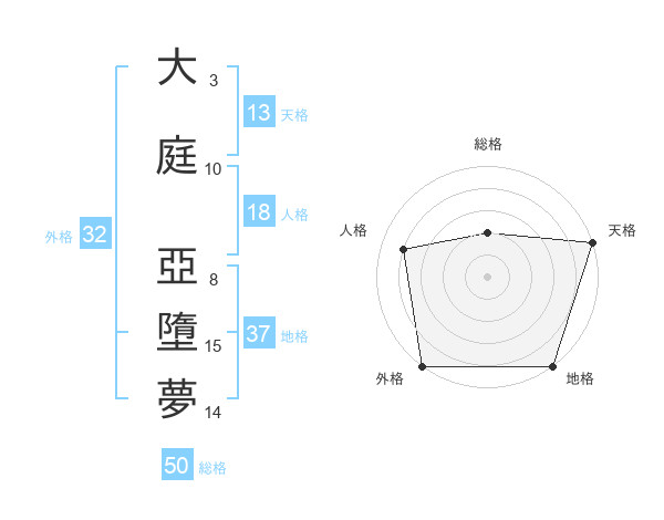 大庭 亞墮夢さんを姓名の画数から五運を鑑定