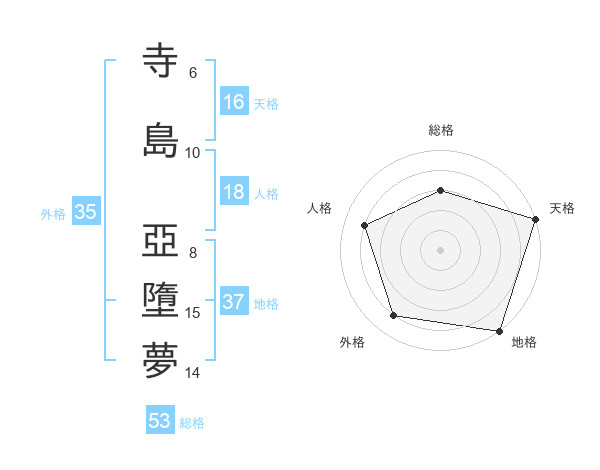 寺島 亞墮夢さんの天格は16画の5点!