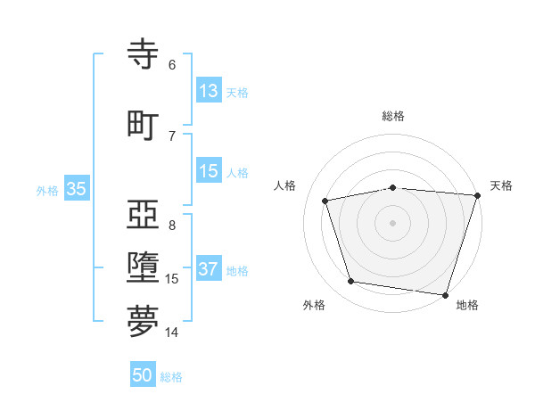 寺町 亞墮夢さんの総格は50画の2点!