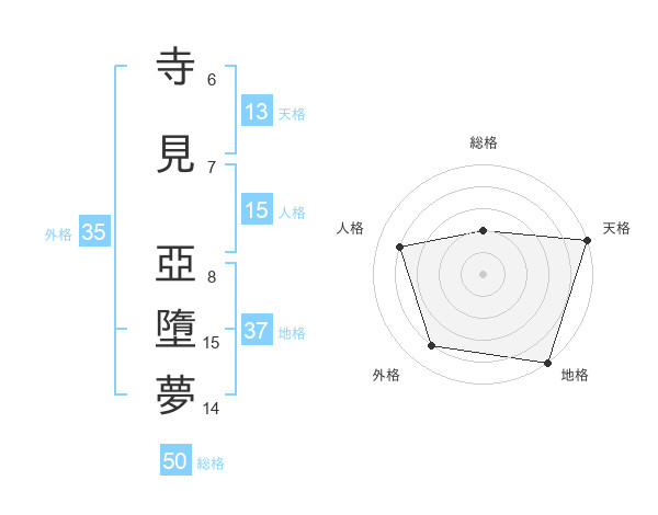 寺見 亞墮夢さんの総格は50画の2点!