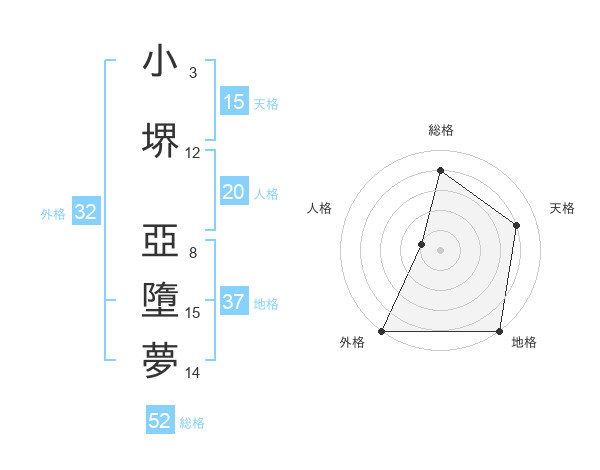 小堺 亞墮夢さんの総格は52画の4点!