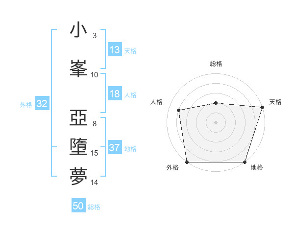 小峯 亞墮夢さんを姓名の画数から五運を鑑定
