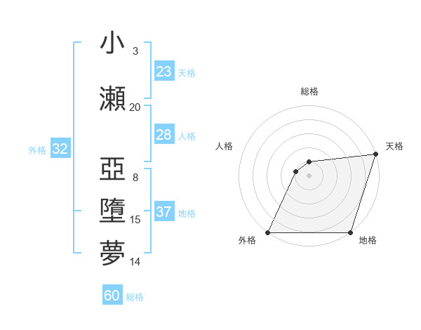 小瀬 亞墮夢さんを姓名の画数から五運を鑑定
