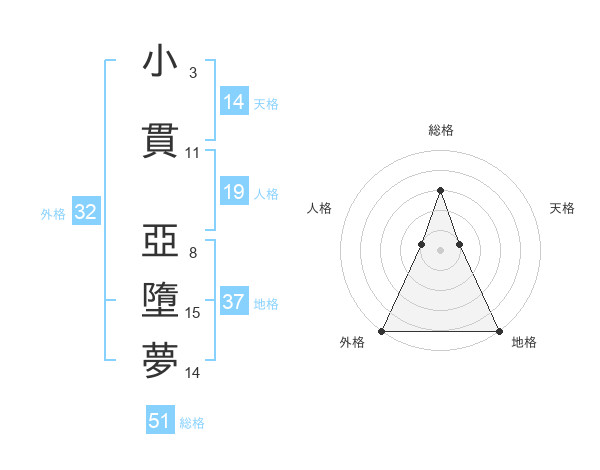 小貫 亞墮夢さんの総格は51画の3点!