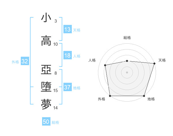小高 亞墮夢さんを姓名の画数から五運を鑑定
