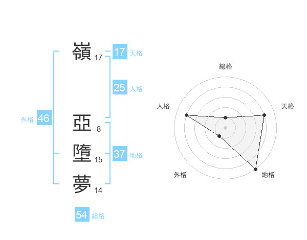 嶺 亞墮夢さんの名前の鑑定結果は!
