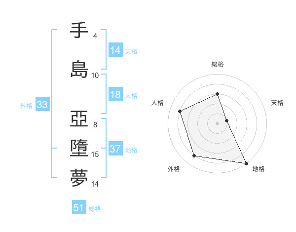 手島 亞墮夢さんを姓名の画数から五運を鑑定