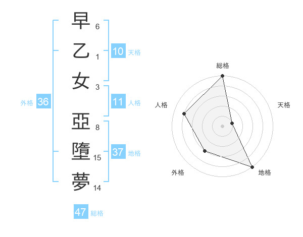 早乙女 亞墮夢さんの総格は47画の5点!