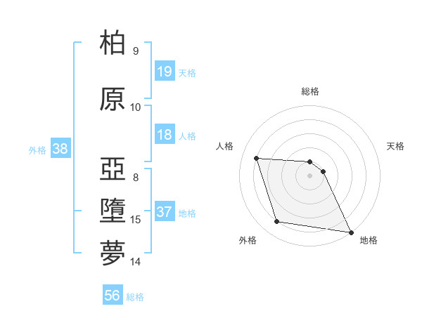 柏原 亞墮夢さんの外格は38画の4点!