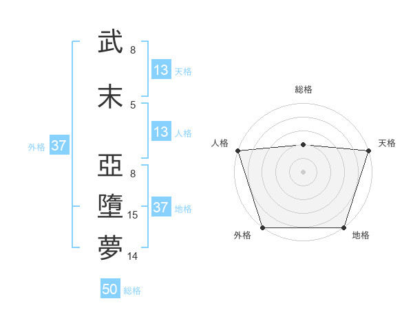 武末 亞墮夢さんの天格は13画の5点!