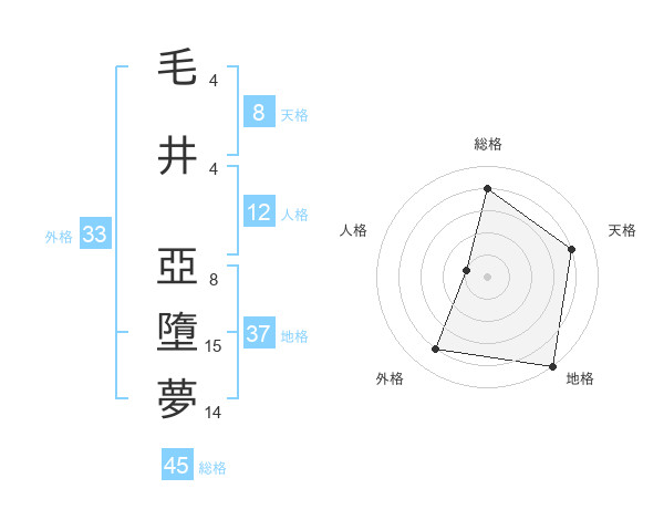 毛井 亞墮夢さんを姓名の画数から五運を鑑定