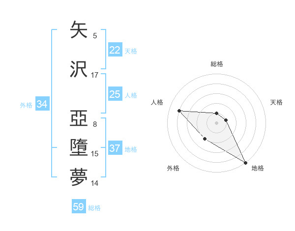 矢沢 亞墮夢さんを姓名の画数から五運を鑑定