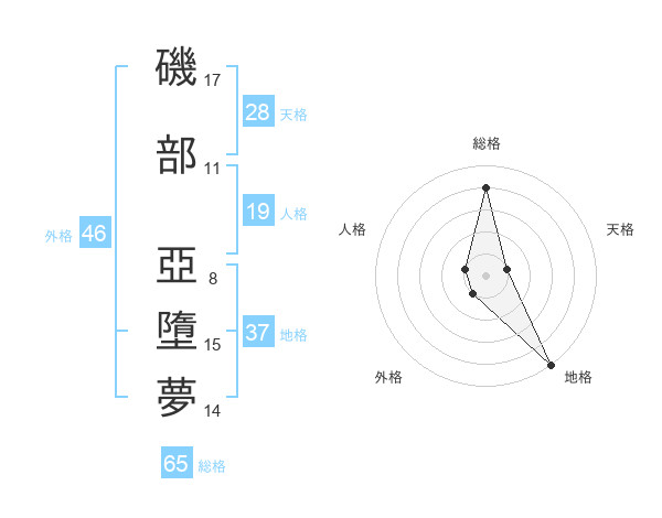 磯部 亞墮夢さんを姓名の画数から五運を鑑定