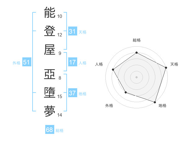 能登屋 亞墮夢さんを姓名の画数から五運を鑑定
