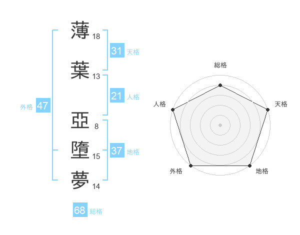 薄葉 亞墮夢さんを姓名の画数から五運を鑑定