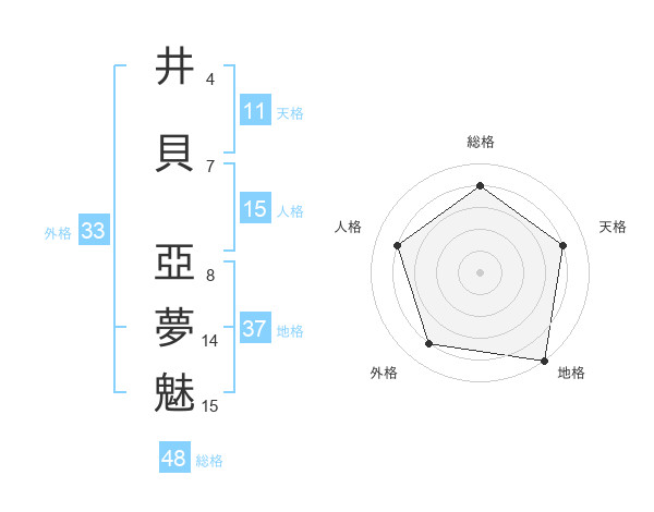 井貝 亞夢魅さんの総格は48画の4点!