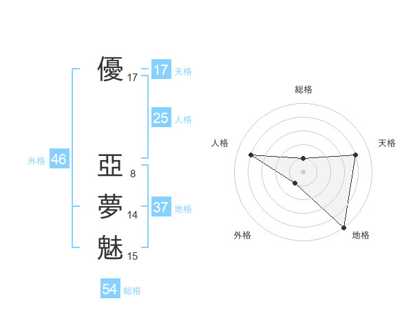 優 亞夢魅さんの総格は54画の1点!