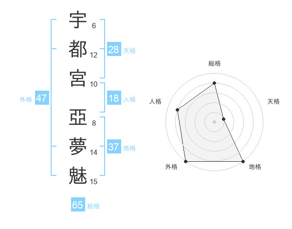 宇都宮 亞夢魅さんの総格は65画の4点!