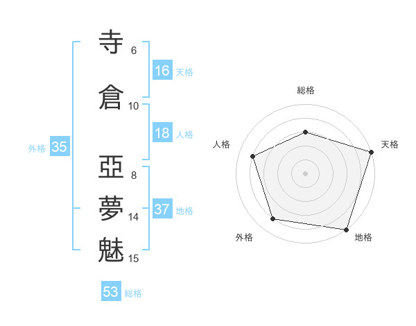 寺倉 亞夢魅さんの総格は53画の3点!