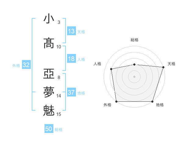 小髙 亞夢魅さんを姓名の画数から五運を鑑定