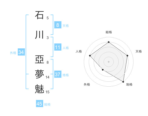 石川 亞夢魅さんを姓名の画数から五運を鑑定