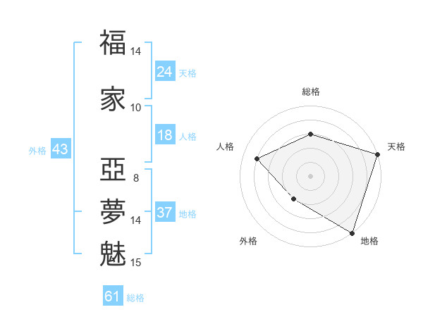 福家 亞夢魅さんを姓名の画数から五運を鑑定