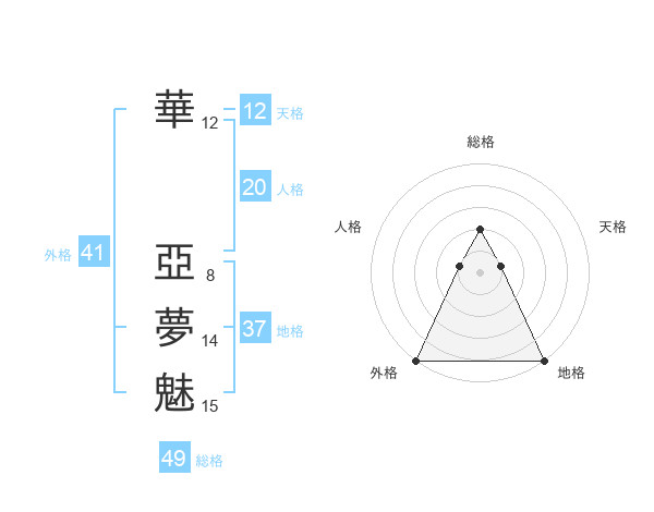 華 亞夢魅さんを姓名の画数から五運を鑑定