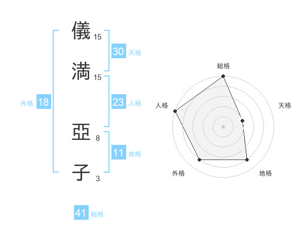 儀満 亞子さんを姓名の画数から五運を鑑定