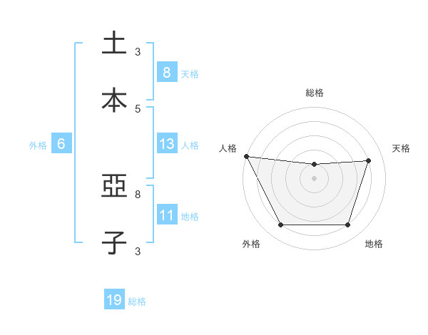 土本 亞子さんの天格は8画の4点!
