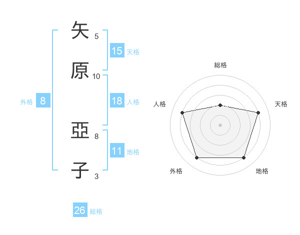 矢原 亞子さんを姓名の画数から五運を鑑定