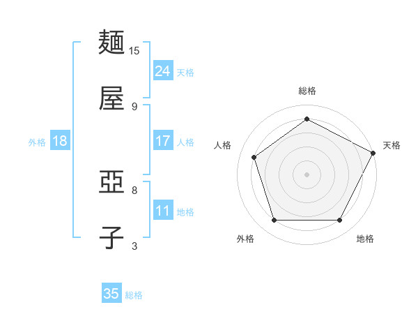 麺屋 亞子さんを姓名の画数から五運を鑑定