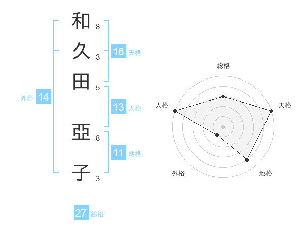 和久田 亞子さんを姓名の画数から五運を鑑定