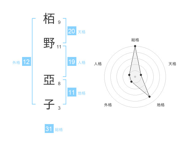 栢野 亞子さんの総格は31画の5点!