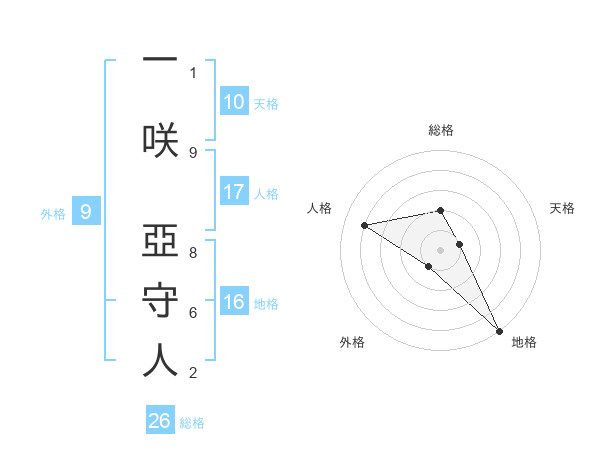 一咲 亞守人さんを姓名の画数から五運を鑑定