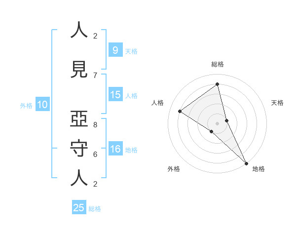 人見 亞守人さんを姓名の画数から五運を鑑定