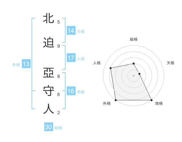 北迫 亞守人さんを姓名の画数から五運を鑑定
