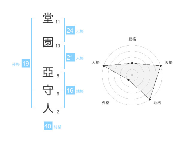 堂園 亞守人さんを姓名の画数から五運を鑑定