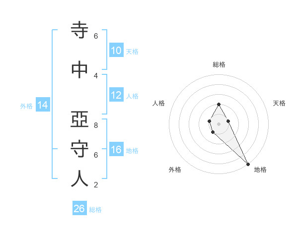 寺中 亞守人さんの総格は26画の2点!