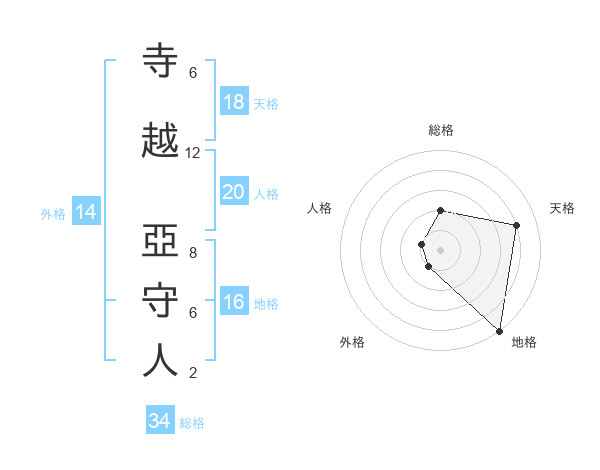 寺越 亞守人さんを姓名の画数から五運を鑑定