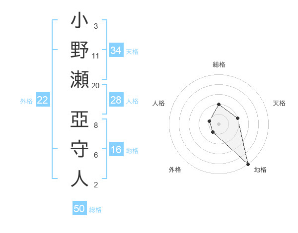 小野瀬 亞守人さんを姓名の画数から五運を鑑定