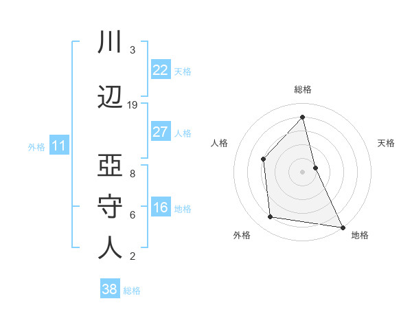 川辺 亞守人さんの総格は38画の4点!