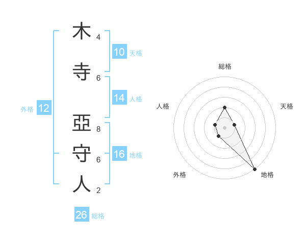 木寺 亞守人さんを姓名の画数から五運を鑑定