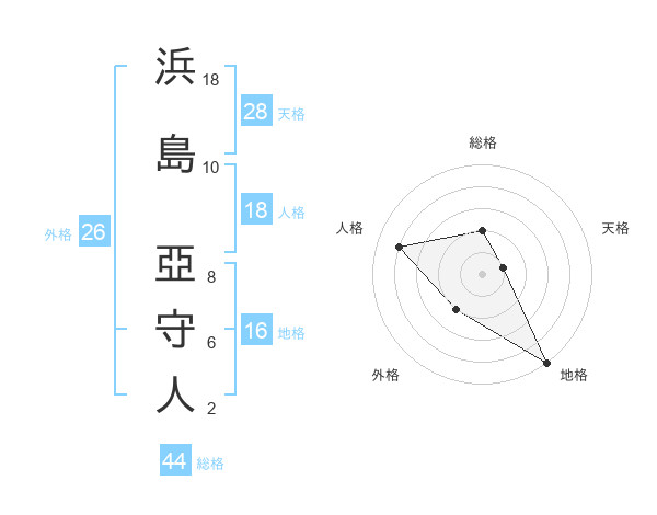 浜島 亞守人さんの総格は44画の2点