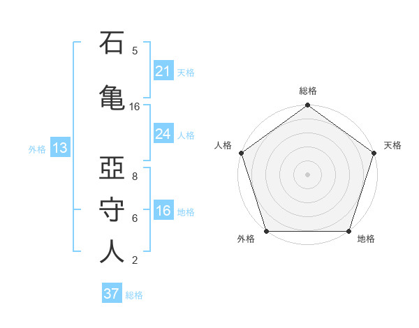 石亀 亞守人さんを姓名の画数から五運を鑑定