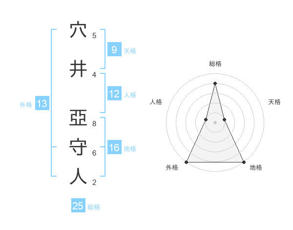 穴井 亞守人さんを姓名の画数から五運を鑑定