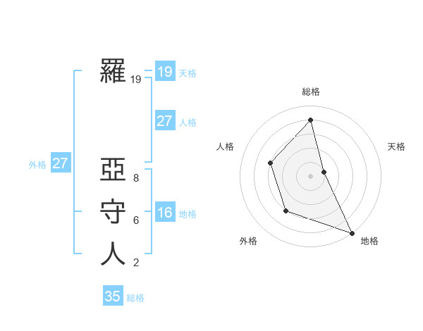 羅 亞守人さんの天格は19画の1点