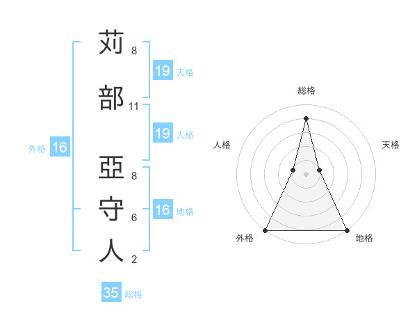苅部 亞守人さんの総格は35画の4点!