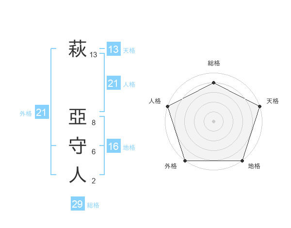 萩 亞守人さんを姓名の画数から五運を鑑定