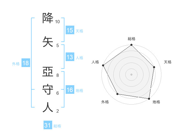 降矢 亞守人さんを姓名の画数から五運を鑑定